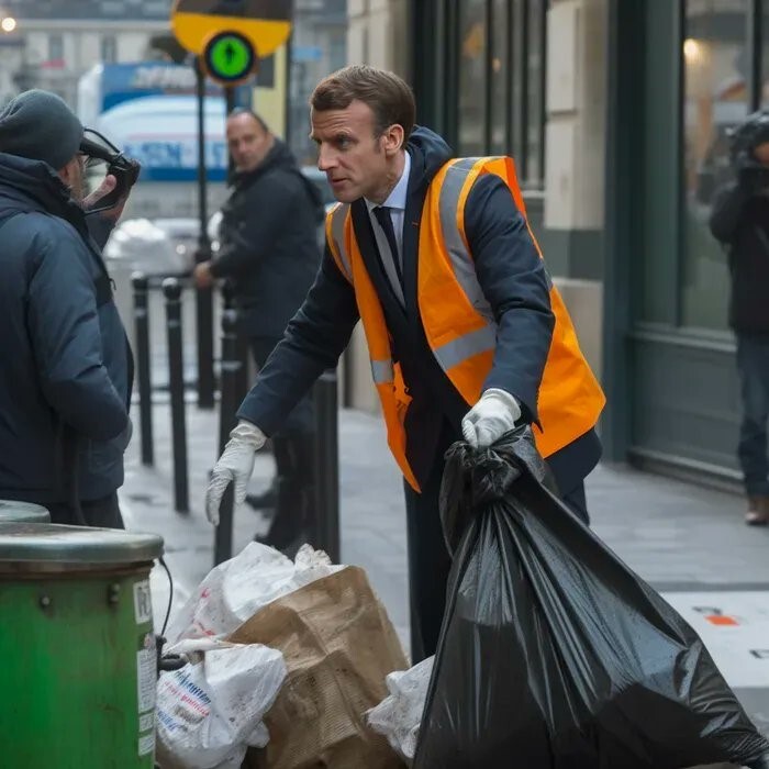 - Emmanuel Macron ramassant les poubelles.