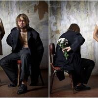 C'est une photographie composée en deux partie, l'une nous montre le recto et l'autre nous montre le verso. Elle représente, sur le recto, une jeune fille vêtue de blanc qui a l'apparence d'un ange, et d'un homme qui a l'apparence d'un voyou, uniquement vêtu de vêtements sombres. L'homme est assis sur une chaise en bois, la jeune fille est debout et tous deux cachent leurs mains dans leurs dos. On ne sait pas ce qu'ils cachent.