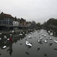 La photo que j'ai choisie pour ce devoir a été capturée lors d'une visite à Amiens pendant la période des fêtes. Pendant ma découverte de la ville, je suis tombé sur une exposition sur l'eau, où des ballons en forme de baleines gonflées semblaient flotter au-dessus de l'eau. La scène, trompeuse à première vue, a été immortalisée dans cette image. En décidant de capturer ce moment, j'ai cherché à exploiter cette illusion visuelle pour ajouter une dimension intrigante à ma présentation.