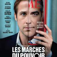 1 - L'affiche du film "Les Marches du Pouvoir" est conception visuelle qui emploie l'illusion pour capturer l'essence du film. Au centre, nous voyons le personnage principal, incarné par l'acteur Ryan Gosling tenant un magazine qui affiche un autre acteur, George Clooney sur sa couverture.