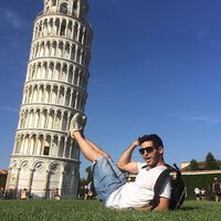 1 - La tour semble reposé ou poussé par le touriste. De plus avec la perspective la taille de la tour semble bien plus petite qu'en réalité.