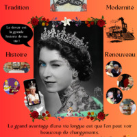 Cette image explore les différentes facettes du règne de la reine Elisabeth II d’Angleterre, ancienne reine du Royaume-Uni. Pour moi, l’image vise à détourner le spectateur de la monarchie traditionnelle en utilisant des éléments visuels, symboliques et linguistiques ceci afin de susciter, chez le spectateur, de multiples interprétations de cette image visant à le tromper.