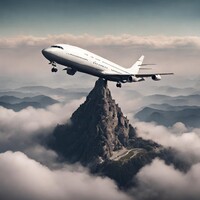 représentation d'un avion posé sur une montagne. Cependant, l'image peut