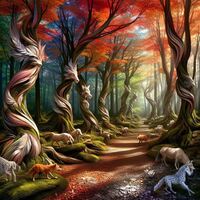 - L'image pourrait être une représentation d'une forêt magique ou fantastique. Les arbres en forme d'animaux peuvent être des créatures magiques ou des esprits de la nature.