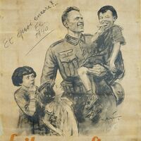 Nous voyons aussi trois enfants. En prenant en considération l’image, nous pouvons déduire que ce sont des enfants français car le texte est dans la langue française. Ces enfants, notamment celui porté par le soldat allemand, semblent en confiance. En effet, le petit garçon qui est dans les bras du soldat semble tellement rassuré qu’il arrive à manger une tartine. Les deux petites filles, quant à elle, le regarde avec admiration, comme si elles savaient qu’elles allaient être protégées du fait de sa présence.