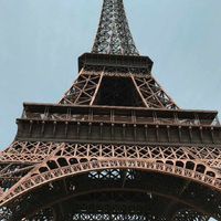 Au centre de l'image, se trouve la photo postée par l'utilisateur. Sur celle-ci, nous voyons seulement un monument, facilement reconnaissable, il semble s'agir de la Tour Eiffel. La photo est prise en contre-plongée, nous ne voyons aucun autre bâtiment autour, ni autres éléments reconnaissables.