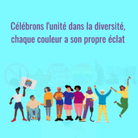 La phrase est formulée de manière positive et utilise des termes pour évoquer des notions d'inclusion, d'égalité et de respect des différences. Cependant, cette positivité linguistique agit comme une couverture qui dissimule les nuances et les subtilités négatives intentionnelles présentes dans l'image. On pourrait y voir dans cette phrase une notion de hiérarchie des couleurs de peau avec « chaque couleur a son propre éclat ».