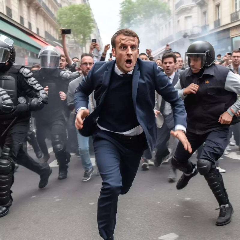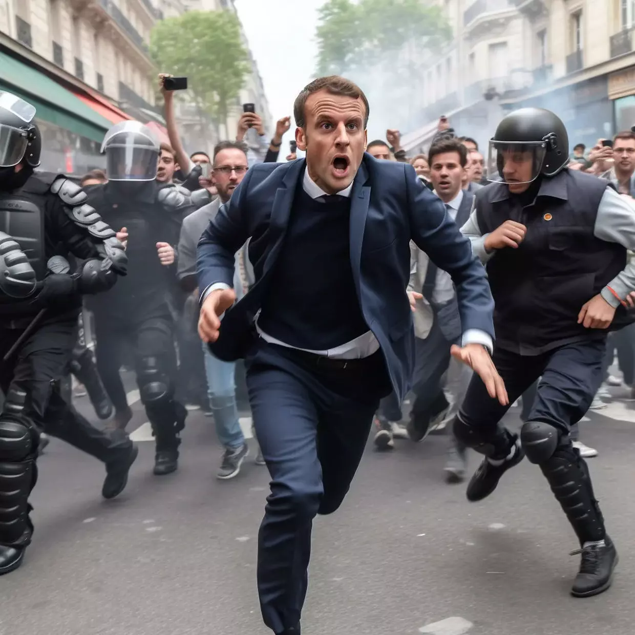 Macron proteste contre la réforme des retraites et s'enfuit des CRS.