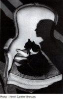 Chat noir et blanc dans un fauteuil avec une ombre d'une homme