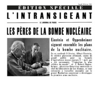La première page du journal "L'intransigeant" en édition spéciale sur "les pères de la bombe nucléaire"